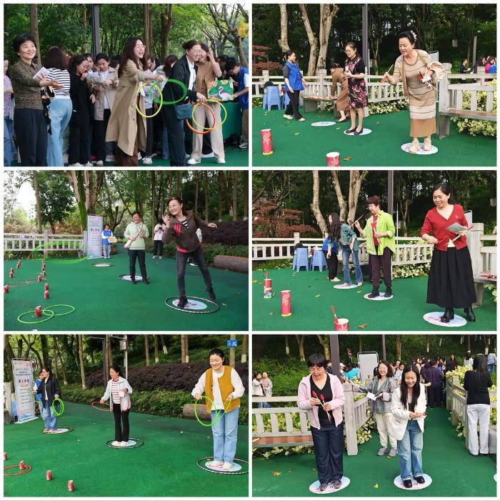活动中,女教职工们迈着矫健的步伐,沿着既定路线悠然前行,尽情享受运动与春日交融的惬意。行进途中,大家或结伴同行,畅谈工作心得与生活感悟;或驻足赏景,定格沿途春日的美好瞬间;或在各游戏点参与瑜伽球、套圈、投壶等趣味游戏,在轻松愉悦的氛围中舒展身心、释放压力。