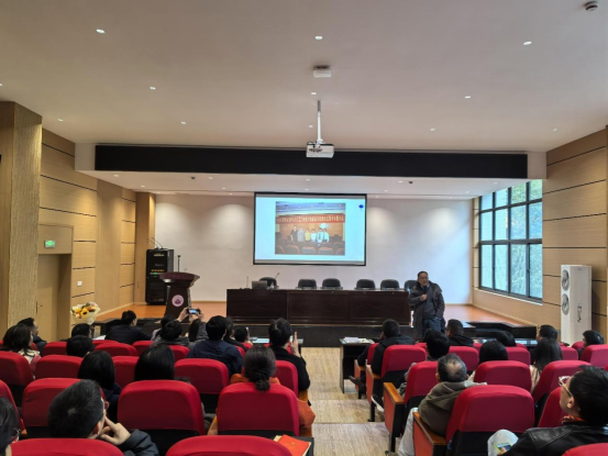 曹鹏军教授深情回顾了36年来在学校教学、科研与人才培养工作中的点点滴滴,分享了自己深耕教育一线的心得体会与职业感悟,更哽咽提及作为恢复高考后考上大学的感恩之情,其真挚感言引发全场共鸣。同时他勉励学院年轻教师踔厉奋发,共同为学院发展再创新绩。