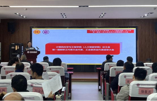 【供稿/计算机科学与工程学院(人工智能学院)分工会】11月26日,计算机科学与工程学院(人工智能学院)在逸夫楼I325会议室召开第一届第二次工会会员大会暨教职工大会,顺利完成学院第一届教职工代表大会代表、工会委员会代表以及学校第一届教职工代表大会代表、工会委员会代表补选工作,民主管理再添新动力。大会由计算机科学与工程学院(人工智能学院)分工会主席董晓欢主持。