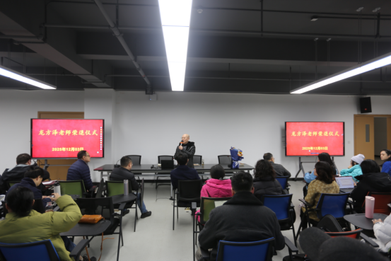 【供稿/设计与人文学院分工会】2025年12月3日下午,设计与人文学院分工会在博闻楼J323为退休教师龙方泽举办了一场温馨而简朴的荣退仪式。仪式由分工会主席周述敏主持,学院党政领导、教师代表齐聚一堂,共同表达对龙老师的敬意与祝福。